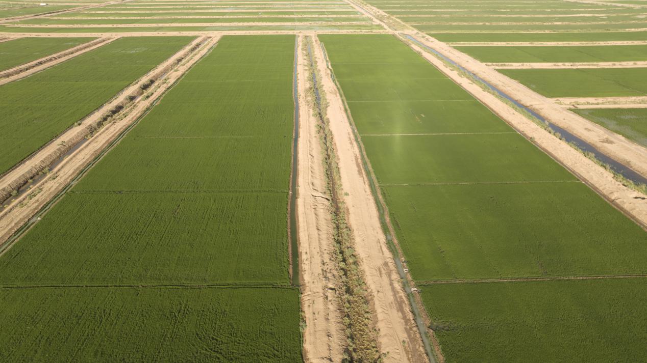 这万亩水稻田,由第一师供销(集团)有限公司和阿拉尔市禾禾米业有限责任公司强强联手打造,按照高标准农田建设的要求,企业采用深耕粉碎松土技术,在三月份对所有地块深耕60至80厘米,并广施农家肥和土磷肥改良土壤结构。