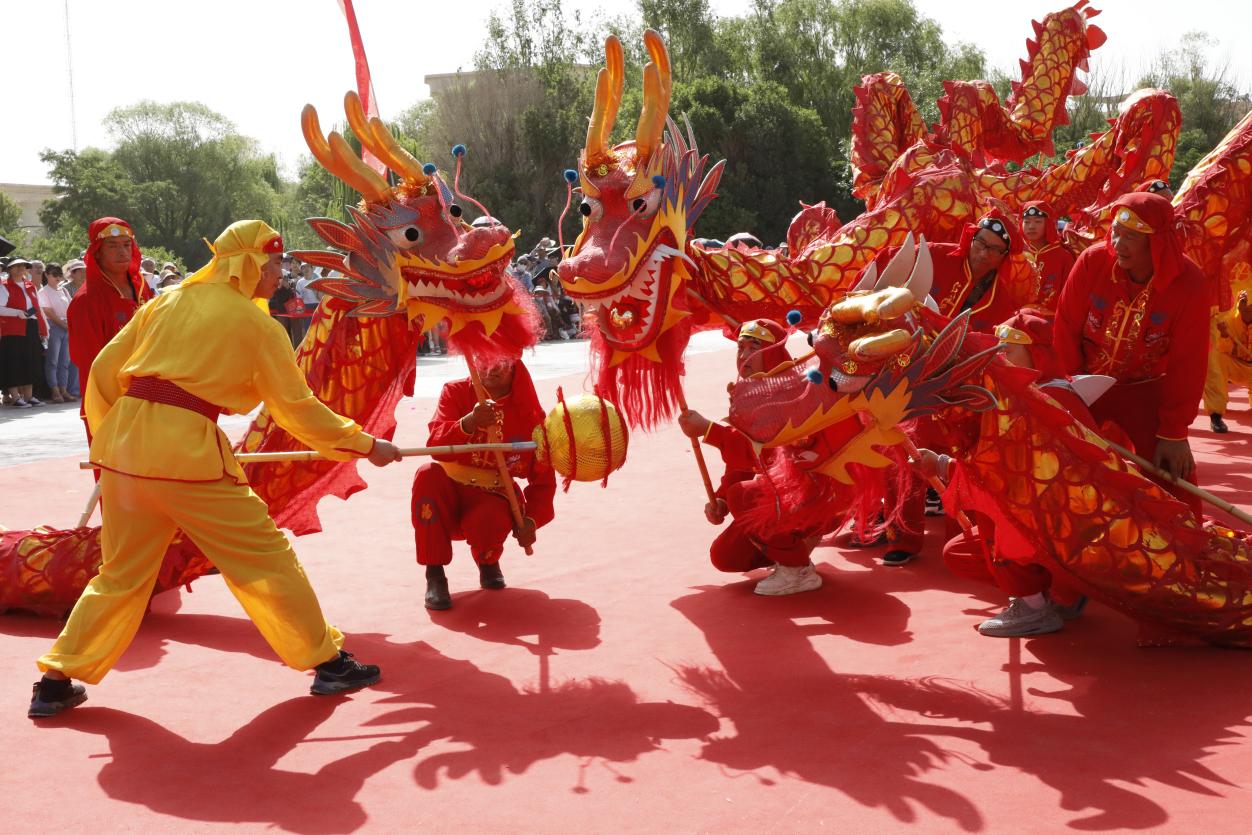 开场舞《鼓舞中国龙》拉开了活动的序幕,节奏铿锵有力、气势慷慨激昂、动作整齐划一的《威风锣鼓》展现了一团金银川镇职工群众勤劳勇敢、善良朴实的个性,奏出了团镇职工群众一往无前、奋发图强的奋斗画卷;传统《舞狮》表演象征吉祥如意,事事平安,表达对现场观众的美好祝福;舞龙升腾、盘旋、翻滚而动,舞动的七条“巨龙”象征着团镇职工群众秉承兵团精神,“老兵”精神,开拓进取、团结拼搏,建设美丽的金银川镇;以鼓助威、以鼓为乐,粗狂有力、气势恢宏的安塞腰鼓表演将现场气氛推向高潮。观众乐海燕说:“活动举办的特别好,看的特别开心,尤其是开幕式进行的的舞龙舞狮、安塞腰鼓和扭秧歌让人印象深刻,精彩的表演展现了一团人良好的精神面貌,表现了一团金银川镇这些年良好的经济社会发展, 希望一团金银川镇发展得越来越好,人民生活越来越幸福”。