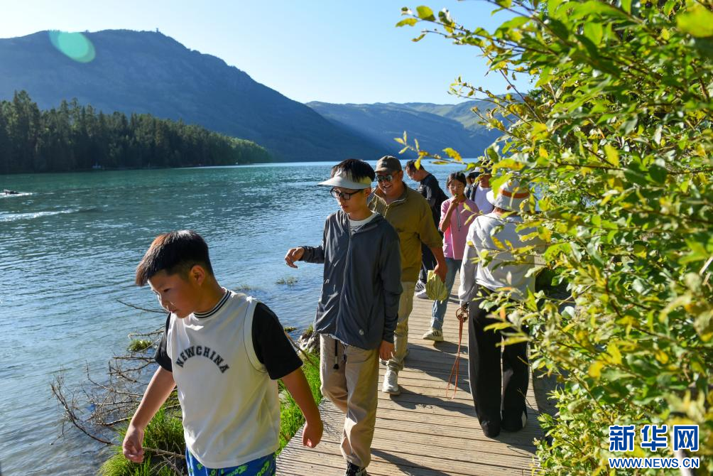 盛夏七月,位于新疆阿勒泰地区布尔津县的喀纳斯景区迎来旅游黄金期。游客乘船游湖、林间漫步、草原踏青,畅享盛夏清凉,感受秀美风光。