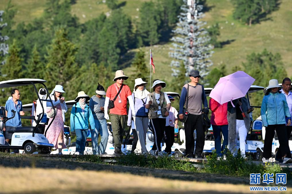 游客在新疆阿勒泰地区喀纳斯景区观光游览(7月19日摄)。新华社记者 丁磊 摄pagebreak