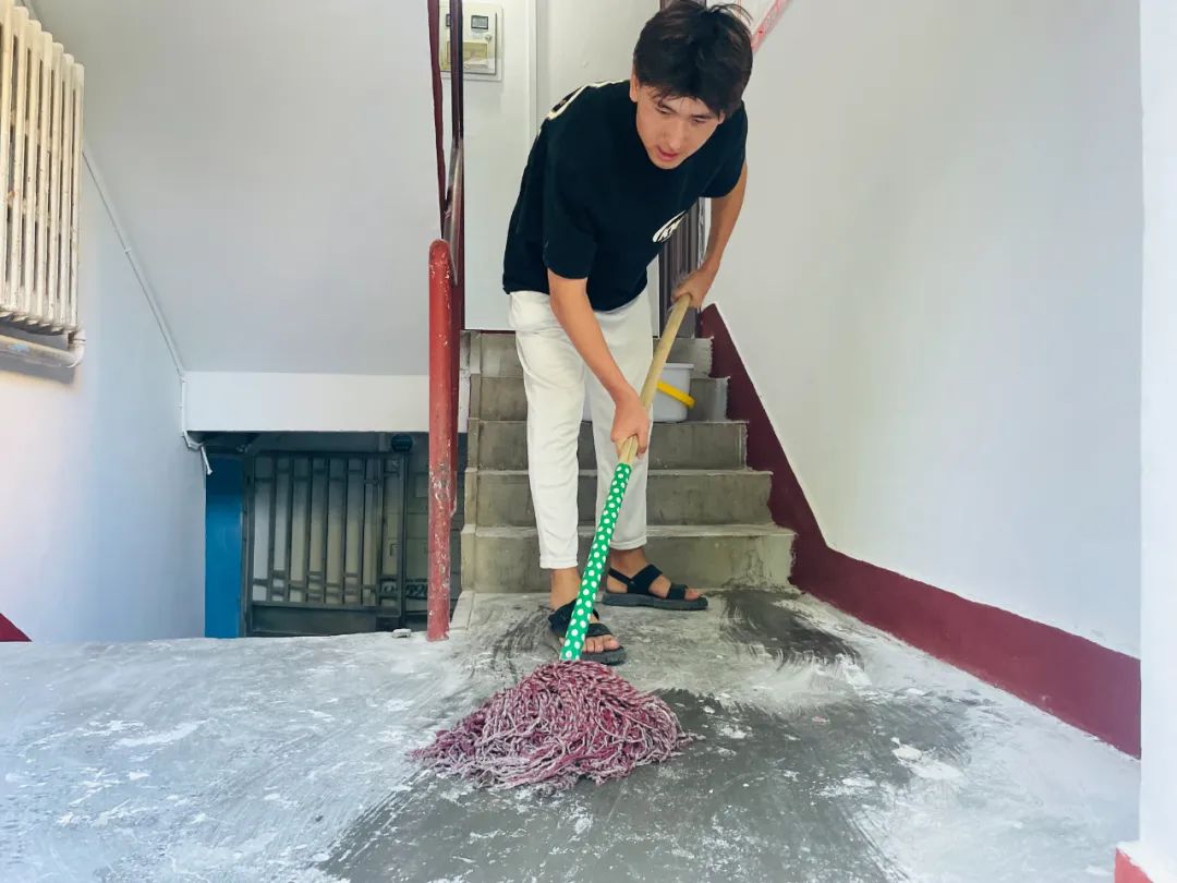 施工队在社区工作人员的带领下,分组对辖区内202栋楼597单元逐个进行刮墙皮、打腻子等前期工作进行清理,再统一使用防水油漆对墙面进行粉刷,同时,更换了部分损坏的门窗。经过施工队的努力,墙面瞬间变得洁白、明亮、整洁,与原先灰蒙蒙的墙壁形成了鲜明的对比。随后,博格达尔镇组织辖区志愿者及物业人员分组分片到小区楼道清扫遗留下的粉尘和落地的灰点,受到了居民的一致好评。