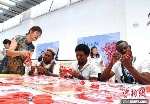 图为网络达人体验中国剪纸。苟继鹏 摄