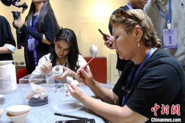 图为网络达人学习中国粉彩瓷制作。苟继鹏 摄