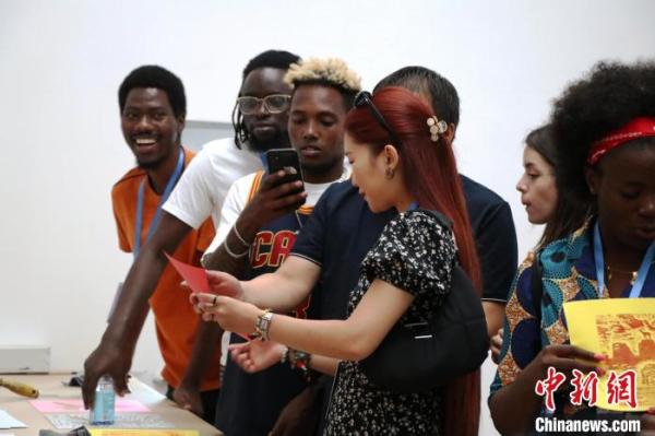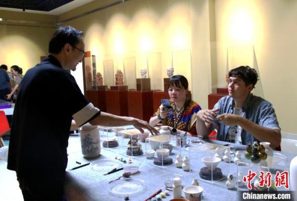 7月22日,参加首届“你好,丝路”网络国际传播交流大会的各国嘉宾走进新疆克拉玛依市白碱滩区美术馆,版画、剪纸、书法、泥塑、粉彩瓷等中华传统文化吸引来自吉尔吉斯斯坦、哈萨克斯坦、越南、意大利、泰国、哥伦比亚等国的青年“零距离”体验。据悉,“你好,丝路”网络国际传播交流大会是由新疆维吾尔自治区人民政府新闻办公室、克拉玛依市人民政府、环球网联合主办,邀请“一带一路”沿线国家的“网络达人”走进新疆克拉玛依,分享和交流关于国际文化传播的经验和感受。