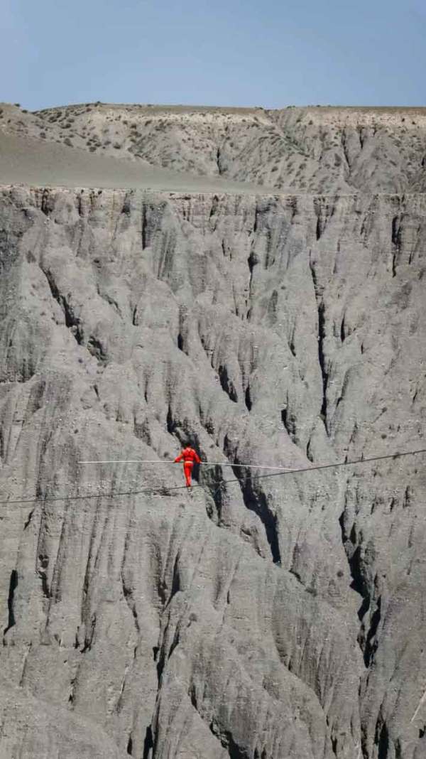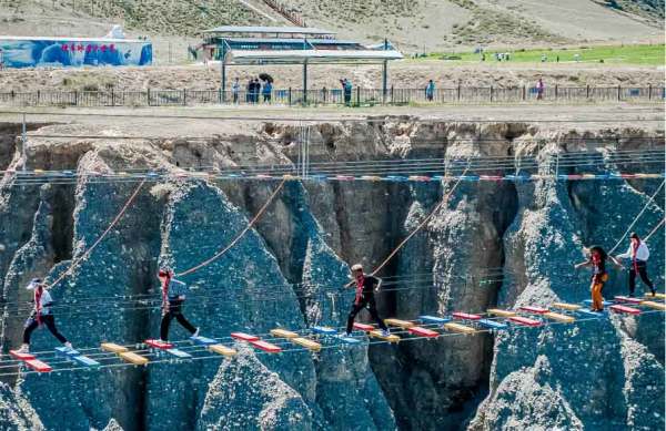对于挑战爱好者而言,高空体验项目难度并不大,但是在充满自然雕琢魅力的独山子大峡谷高空俯瞰大地、眺望远方,似有抱风揽云之势。乌兹别克斯坦网络达人李辰阳(KhonkhujaevAsilbek)在大峡谷玻璃栈桥上拍摄视频留念,将这次经历形容为“一场惊险、刺激的冒险”。