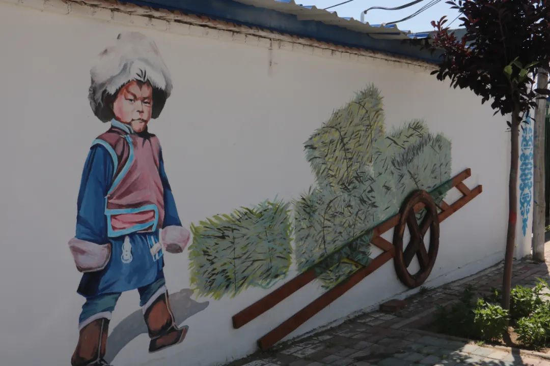吐日根村党支部书记巴特尔说道:“原来的土墙一点也不美观,我们通过手绘具有主题性且群众喜闻乐见的墙体画,让墙体成为宣传政策、传播文明的有效载体。下一步,我们将通过手绘宣传画着力打造出宣传政策、移风易俗、服务群众最后一公里的文化阵地。”