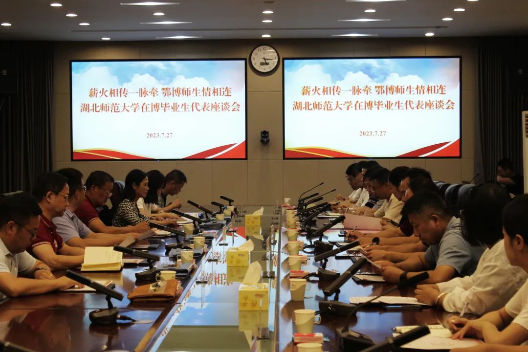 座谈会上,在博工作的湖北师范大学毕业生代表就个人发展、学术研究、社会实践和就业指导等方面,畅谈在学校学习生活的感受和建议,表达对母校的情感与期盼。