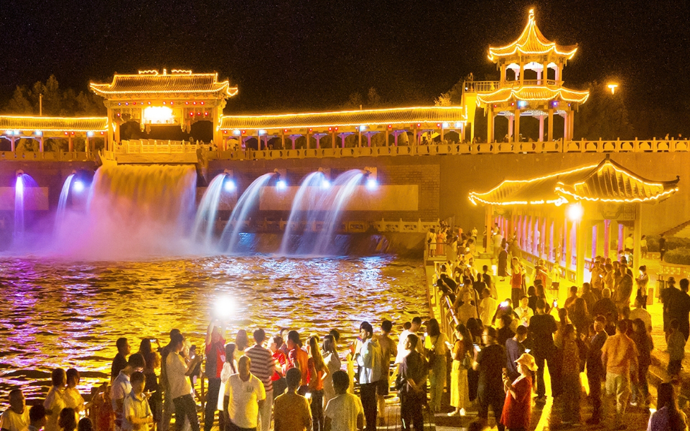 克拉玛依市区九龙潭景区,前来观景的游客和纳凉的市民络绎不绝。克拉玛依日报全媒体首席记者 闵勇 摄