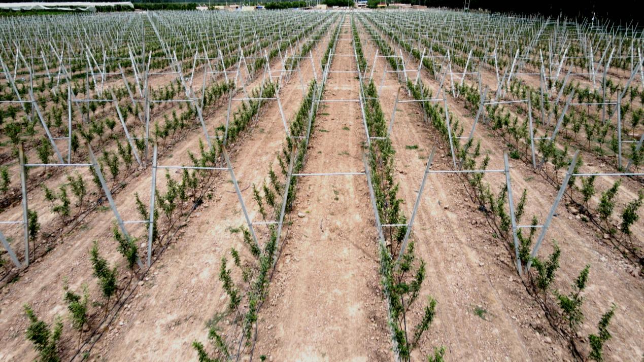 新疆佳心源农业科技有限公司总经理周祥龙说:“我们这个种植园区的种植密度是每亩330株左右,是传统乔化果园种植密度的6倍,高密度种植丰产期更早,收回投资成本的时间也就更早。”