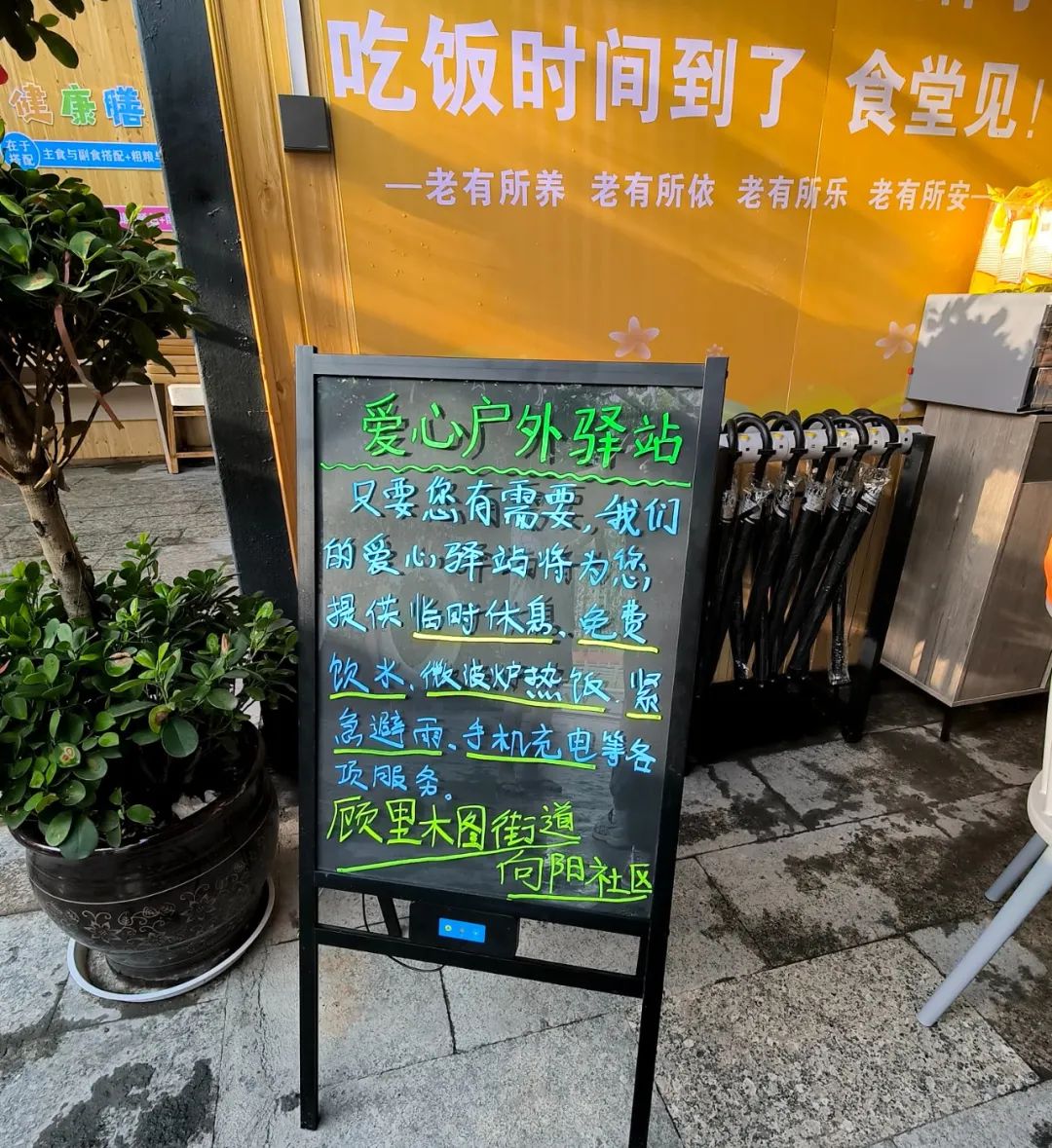 “爱心饮水、手机充电、物美价廉的午饭……没想到设施这么齐全,在户外长时间工作,都没空吃饭,现在有了向阳社区大食堂,饭菜美味又实惠,还有休息空间,感觉很温馨,社区打造的驿站提供了很大便利。”外卖小哥颇有感慨地说道。