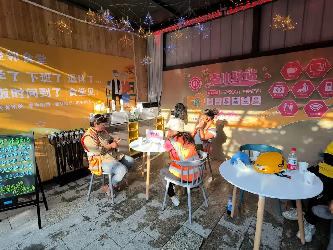 户外劳动者是城市环境的维护者、秩序安全的守护者、便利生活的提供者,为城市发展进步作出了重要贡献。为进一步提升户外劳动者的获得感、幸福感和归属感,向阳社区不断创新基层党建模式,坚持为群众办好事实事,探索建立户外劳动者“爱心驿站”,在“社区食堂-睦邻食堂”内打造党员联系和服务群众的新平台。