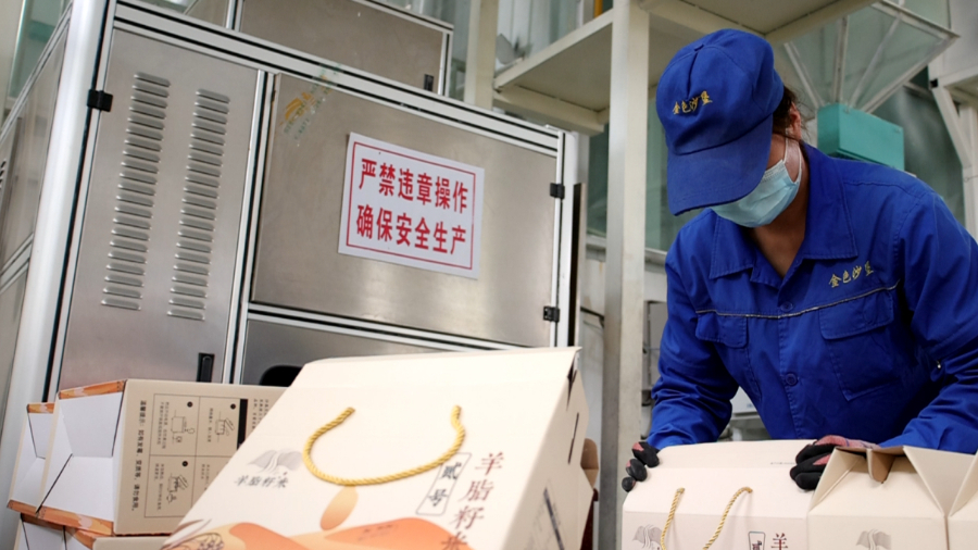 羊脂籽米在自动化生产线上包装。王诚 摄