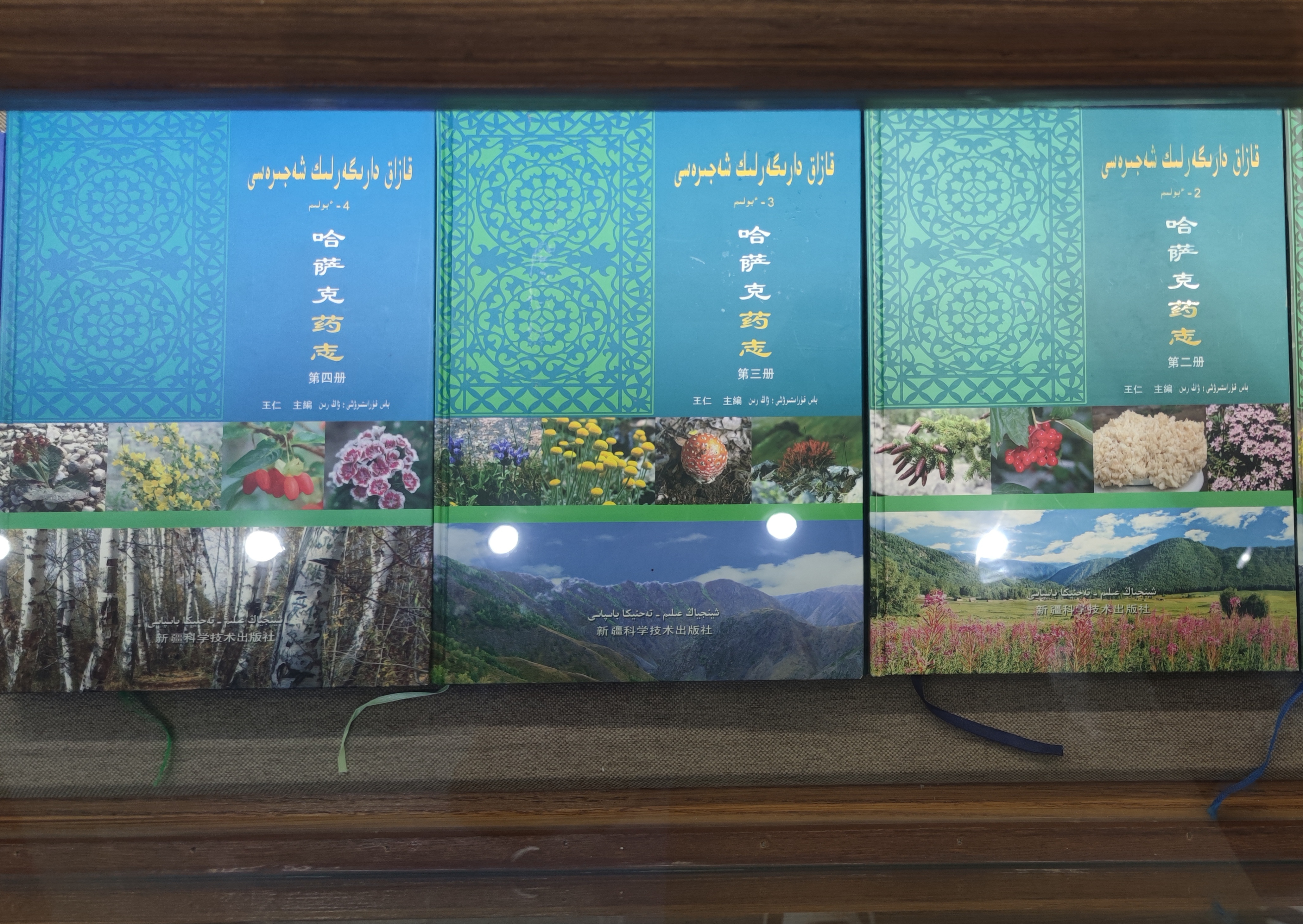 在采集标本之余,阿尔泰山中草药博物馆的名誉馆长王仁还利用自己在原阿勒泰地区中医医院(哈萨克医医院)几十年的行医经验,撰写了《哈萨克药志》(1-4册)、《哈萨克族医常用植物药材使用图谱》等11部著作,哈萨克族300余种中草药被记载在册。“我在哈萨克医医院工作了将近20年,意识到哈萨克民族作为游牧民族,文字记载的东西比较少,而哈萨克医药在理论方面的传承,比如一些民间治疗方法的传承、哈萨克药材的传承等等的记载都非常欠缺。”王仁讲述道。哈萨克传统医学书籍的撰写,不仅完善了中草药博物馆在民族传统医药方面的空白,也为今后的学习、传承和研究工作,提供了基础性的参考。