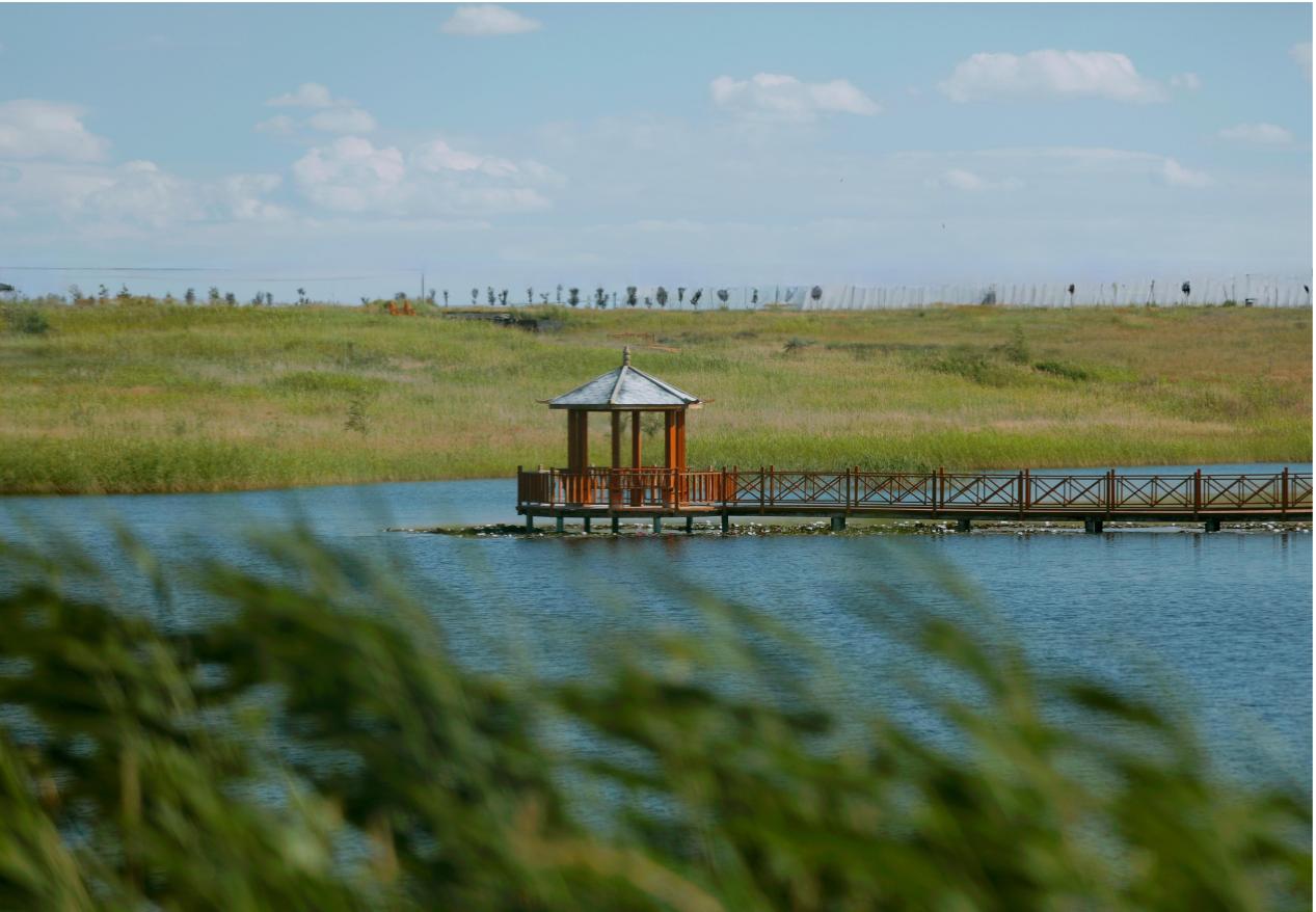 图为福海县国家现代农业产业园观光风景区荷花池 贾震雅 摄
