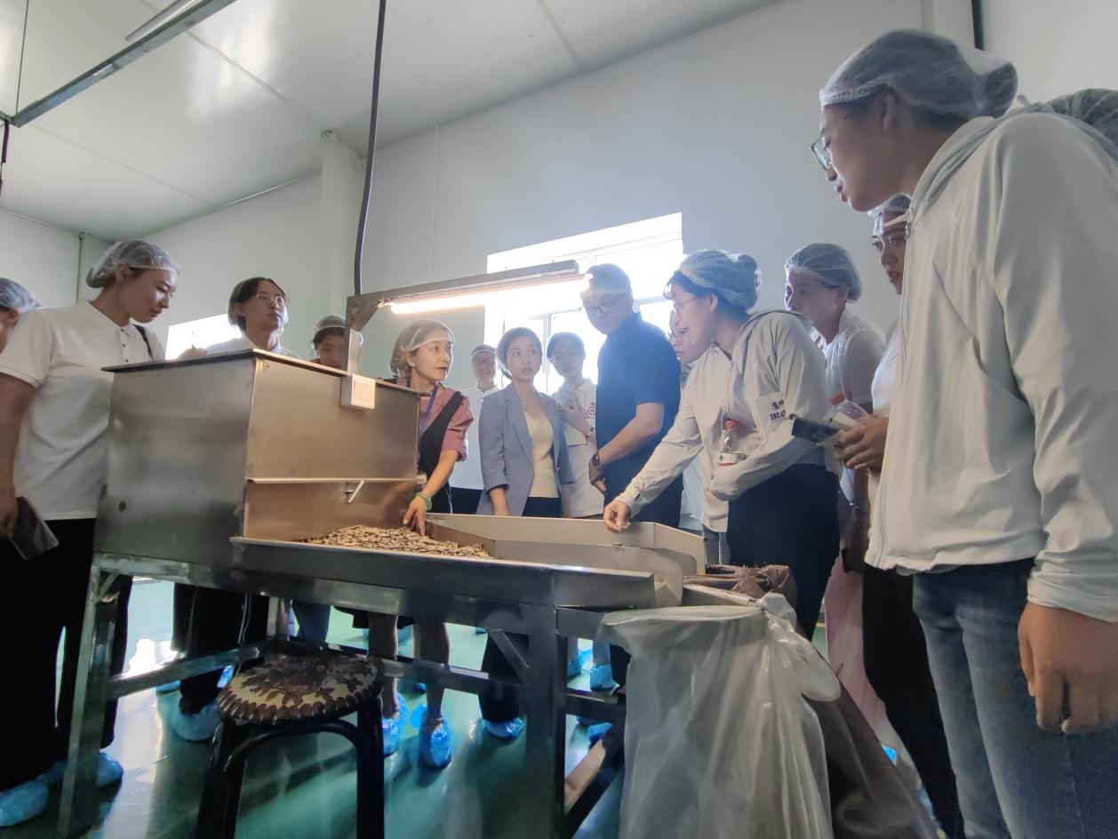 图为丰吉尔公司负责人向参观者介绍瓜子生产过程。杜安 摄