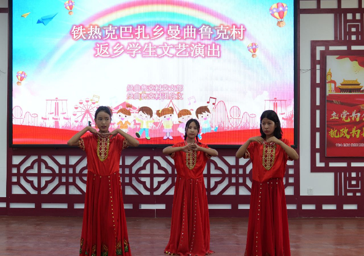 为进一步铸牢中华民族共同体意识,弘扬中华优秀传统文化,丰富返乡学生精神文化生活,展示学生的才艺和创造力。8月19日晚上,轮台县铁热克巴扎乡曼曲鲁克村开展“逐梦青春 放飞梦想”返乡学生文艺汇演活动。