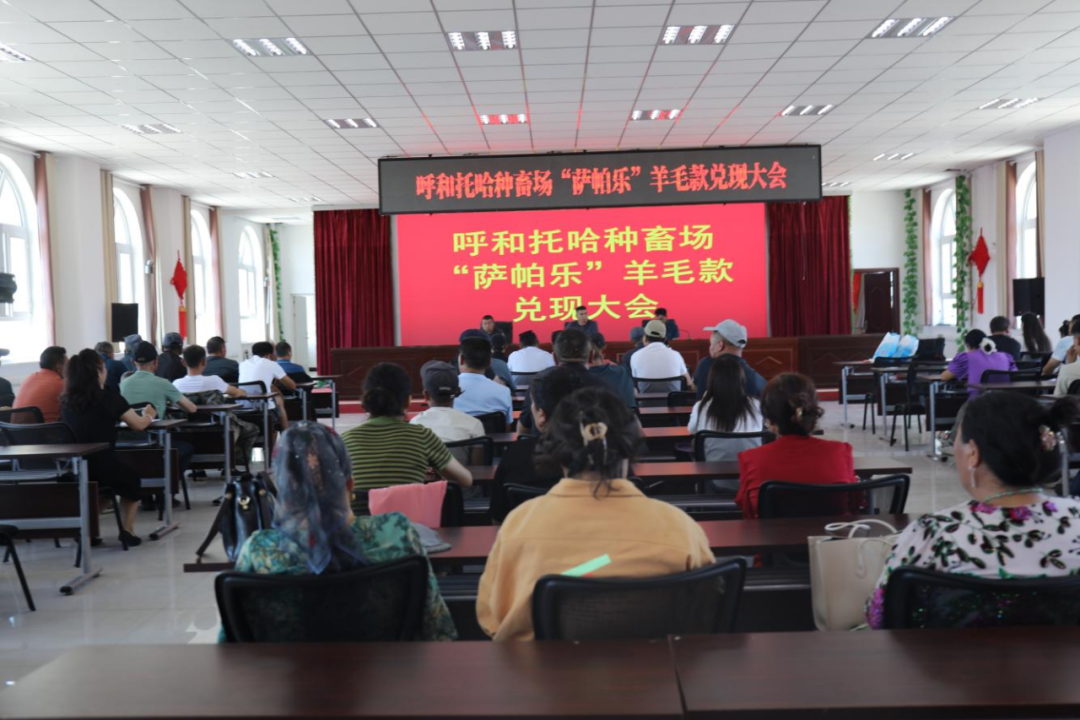 近日,在温泉县呼和托哈种畜场呼和托哈队会议室里,50余名牧民齐聚一堂领取羊毛款。