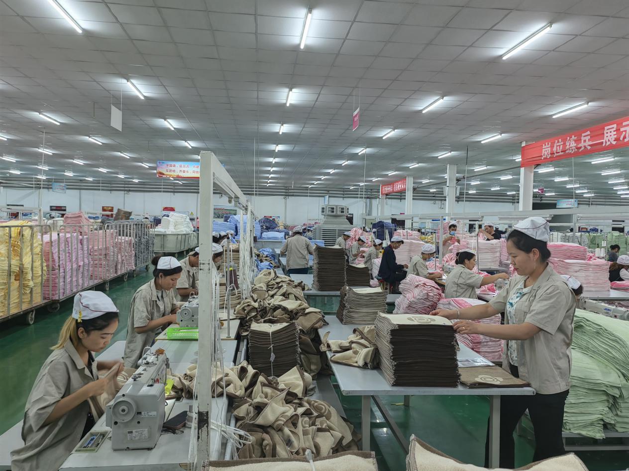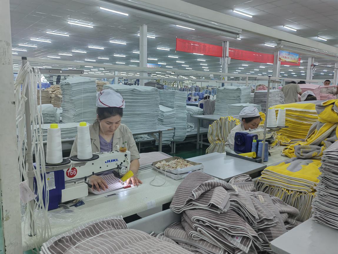 工人们正在进行毛巾平缝加工处理。郑亮 摄