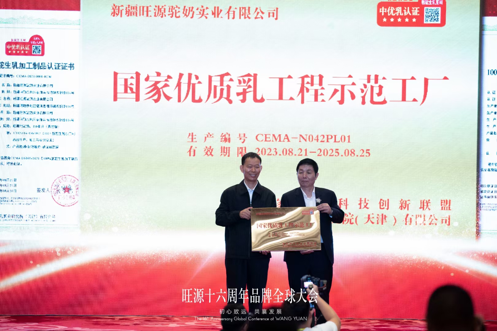 另外,中国农业农村部食物营养与发展研究所所长王加启在会议现场表示,今年旺源驼奶系列产品获得了国家奶业科技创新联盟颁发的“中优乳”认证,成为全国首家通过国家优质乳工程认证的驼奶企业,并进行了“国家优质乳工程示范工厂”的授牌,旺源也成为了“好驼奶”的代名词。