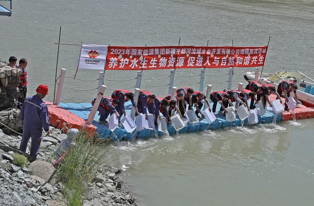 吉林台、开都河、阿克苏公司,是新疆公司电力板块下属水电开发公司,虽分处南、北疆,却于一脉同源自天山山系的伊犁喀什河、开都河、库玛拉克河流域从事水电梯级开发。自建成伊始,便严格落实生态基流泄放流量要求,办理了水域滩涂养殖证、水生野生动物人工繁殖许可证和特许猎捕证,建设了集鱼类增殖、放流、监测、科研于一体的鱼类增殖站。截止2023年,新疆公司累计在“三河”流域放流新疆珍稀土著鱼苗295.5万尾,共计投入资金6100余万元。