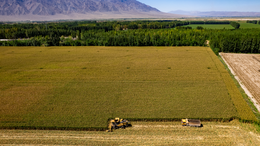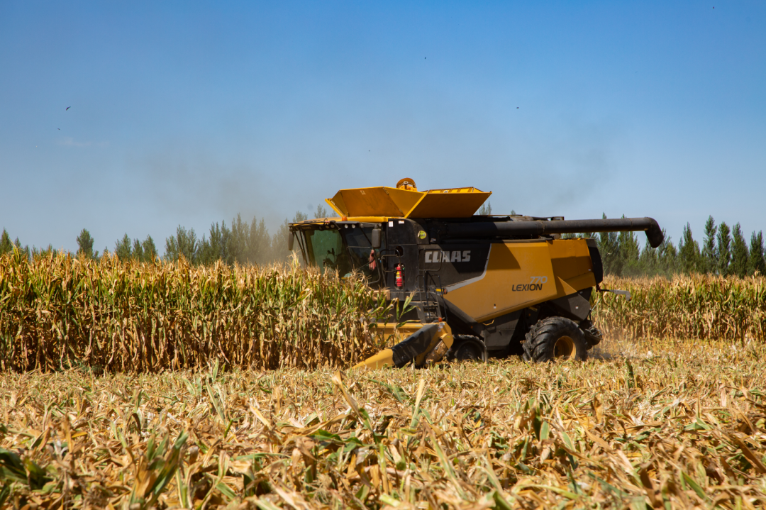 金秋之际,新疆精河县大河沿子镇迎来了玉米丰收时刻,收割机的轰鸣声在田野上回荡,标志着全镇籽粒玉米收割工作启动。8月28日,在精河县大河沿子的额勒森陶勒盖北村玉米地里,玉米收割机开足马力在田间忙碌穿梭,不一会儿,便完成了秸秆粉碎以及玉米棒的收集等工作。拖拉机跟随收割机配套作业,及时将打磨、粉碎的青贮饲料运出去,全程机械化收割,大大缩短了采收时间,节约了成本。