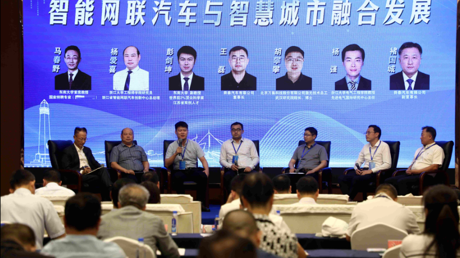 专家圆桌论坛,探讨智能网联汽车与智慧城市融合发展。张大松摄