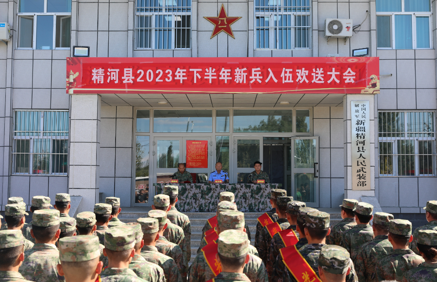 “团结就是力量,团结就是力量,这力量是铁,这力量是钢……”慷慨激昂的歌声响起。9月16日,精河县2023年下半年新兵入伍欢送大会在精河县人民武装部举行。县人民政府党组成员、副县长、县党委政法委副书记、县公安局党委书记、局长赵永海出席欢送会并讲话,县人武部、各乡镇场武装部负责人、专武干事、全体新兵及新兵家长参加欢送会。