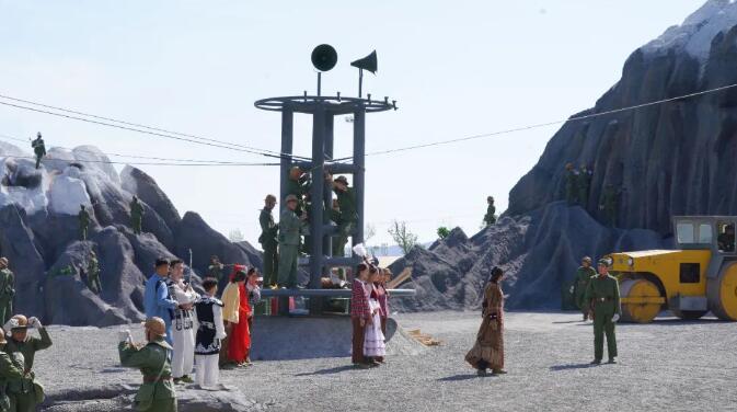 以当年解放军官兵壮怀激烈修筑独库公路为内容,再现独库公路修筑历程的大型沉浸式红色实景剧《独库天路》目前正在独山子紧张排练中。新疆应用职业技术学院艺术学院的近100名学生全程参与到实景剧的彩排和演出当中。
