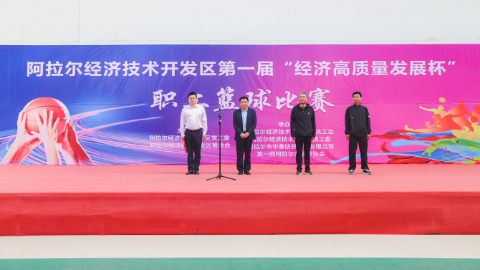 9月24日,国家级阿拉尔经济技术开发区(以下简称经开区)“中国梦 奋斗美 活力经开区—助力师市经济高质量发展”第一届“经济高质量发展杯”职工篮球比赛在阿拉尔市中泰纺织科技有限公司职工文体中心成功举办。本次活动由经开区党工委、管委会主办,经开区群团组织、阿拉尔市中泰纺织科技有限公司、阿拉尔市篮球协会承办,经开区管委会代表队、中泰纺织代表队、睿格纺织代表队、润新东彩代表队、台沃肥业代表队等13支队伍参赛。第一师副师长,阿拉尔市政府党组成员、副市长,经开区党工委书记、管委会主任鲁飞,阿拉尔市中泰纺织科技有限公司党委书记、董事长宫正,经开区党工委委员、管委会副主任余新意及企业相关负责人参加开幕式。