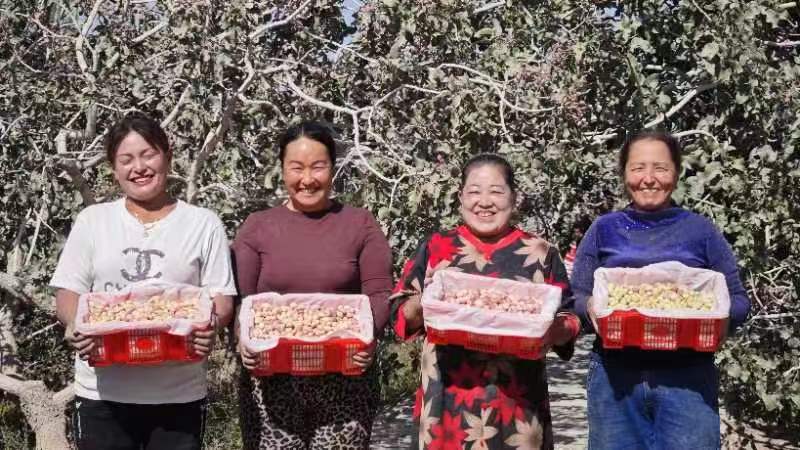 “一起工作的兄弟姐妹有100多人,我主要负责果树管理和果实采摘。每摘下一颗开心果,我们就会发自内心的感到欣喜,这些开心果也是我们的致富果。”疏附县吾库萨克镇托万克吾库萨克村村民热依汗古丽吐尔迪说。