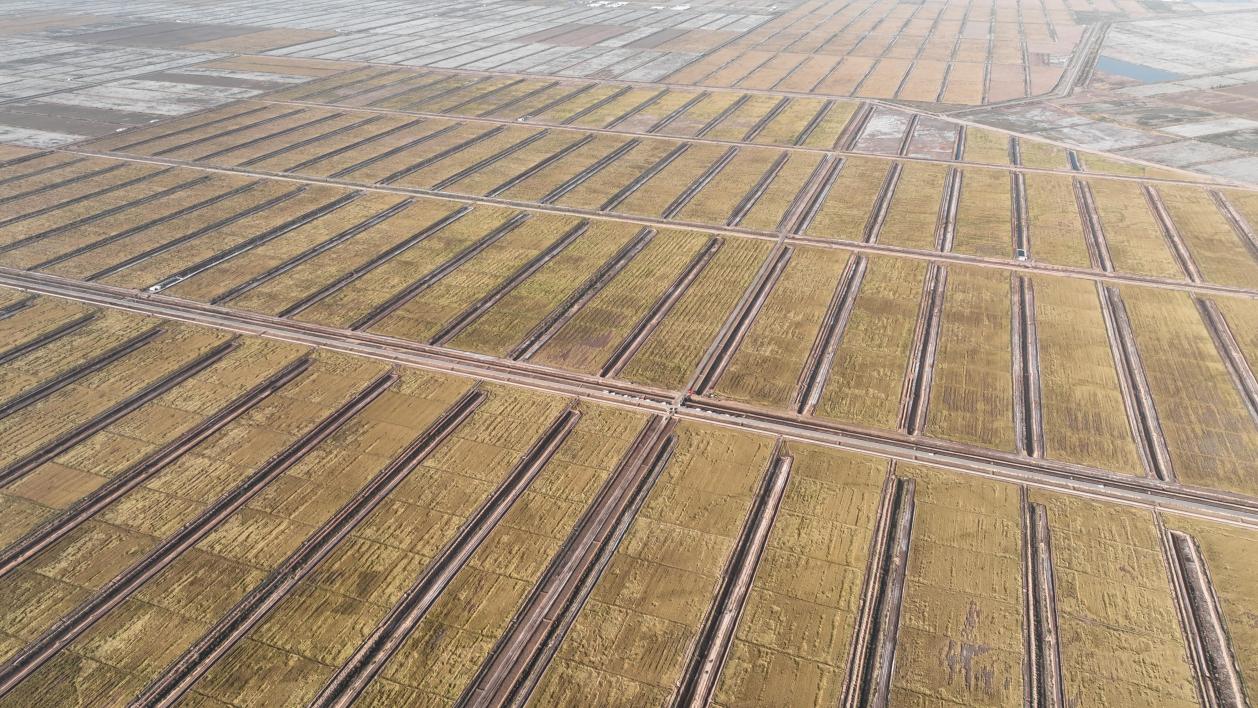 第一师阿拉尔市六团十一连耐盐碱水稻航拍。杜新民 摄