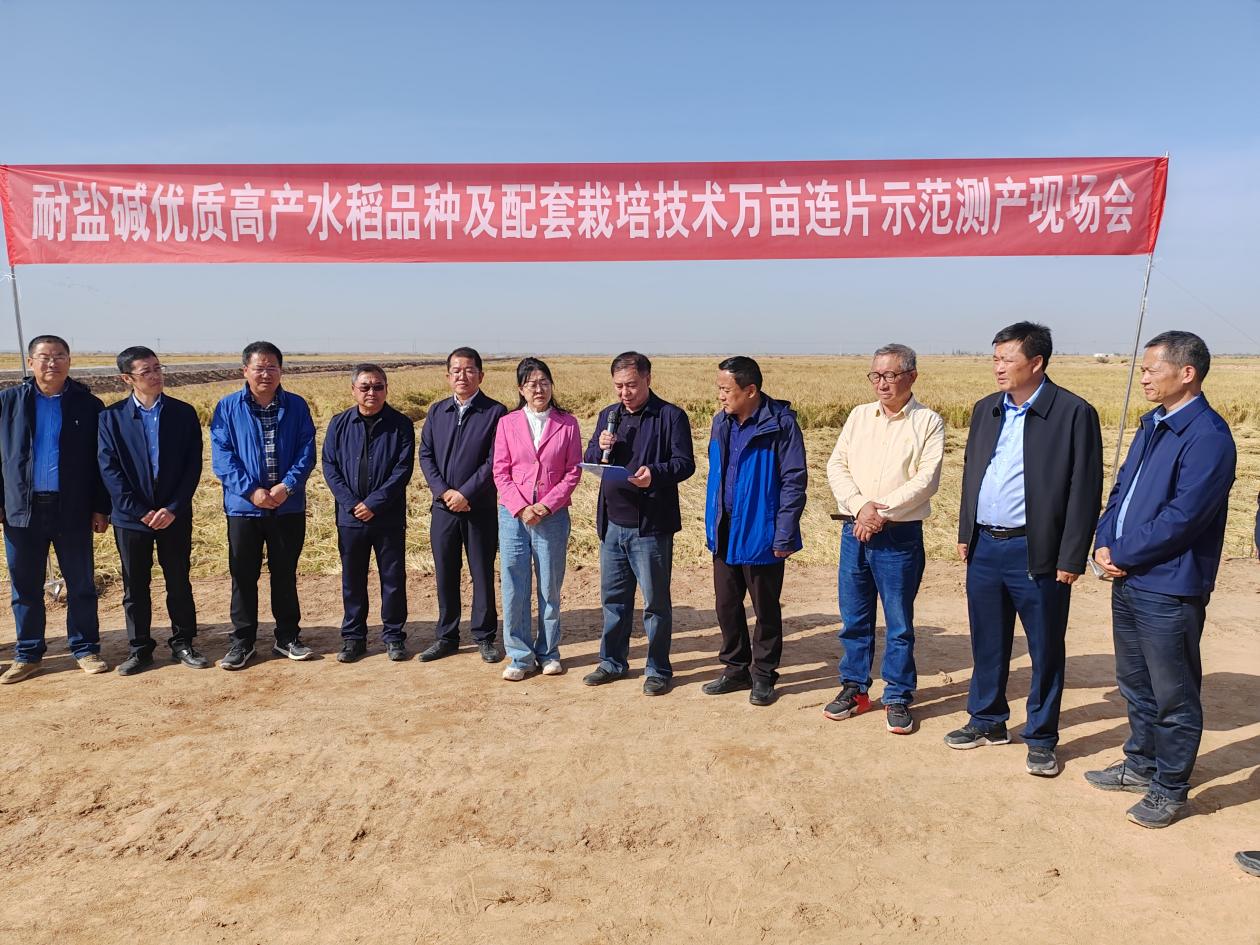本次测产的万亩盐碱水稻地,是由国家耐盐碱水稻技术创新中心西北中心和新疆农垦科学院共同选育的新稻36号,并配套推广了耐盐碱水稻丰产栽培技术,形成以耐盐碱水稻品种为核心,集成生物修复、节灌控盐、调理改土、栽培调控等关键技术措施配套的标准化方案。今年的成功种植,为西北内陆盐碱地的综合利用树立了样板。