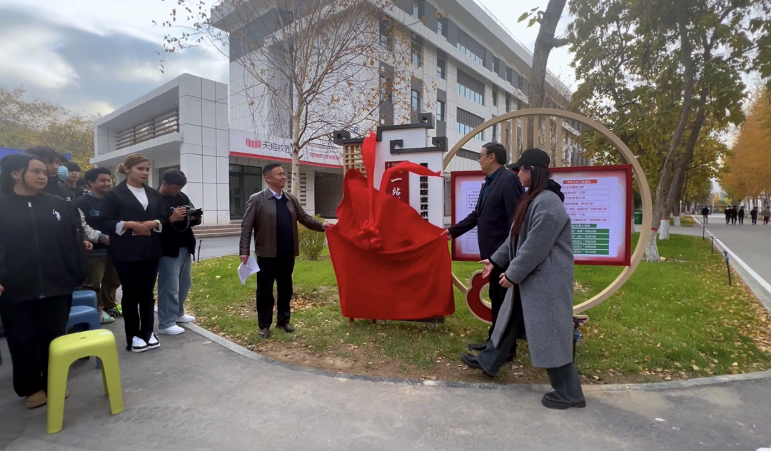 在“一站式”笃行社区揭牌仪式上,学院党委副书记、院长叶列吾别克·那克斯别克与学院党委委员、宣传部部长卡吾孜亚提·斯德克共同为“一站式”笃行社区进行揭牌。