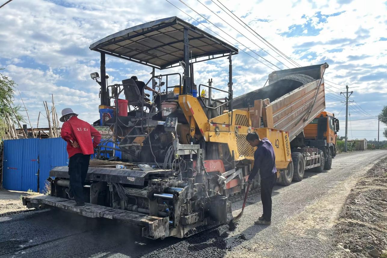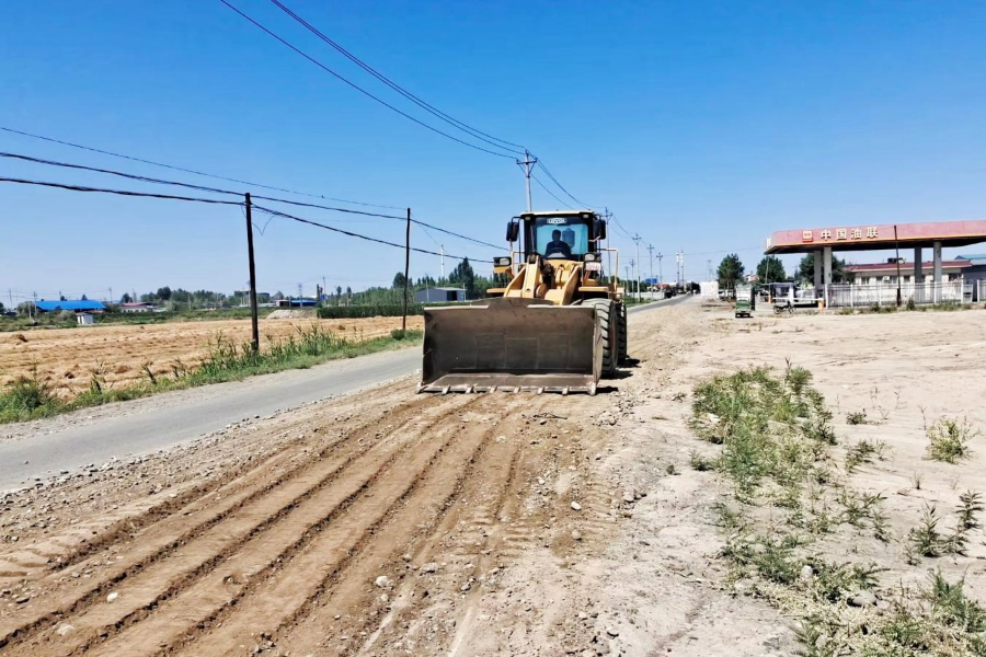 近日,在沙湾市柳毛湾镇皇渠新村头坪组乡村道路施工现场,机器轰鸣,工人们正在迅速施工拓宽道路、修缮破损路面,把原来4米宽的路面加宽到6米,切实解决之前双向来车时错车不便的难题。