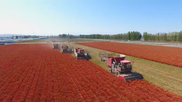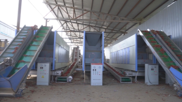 沙湾市椒园农业发展有限公司生产厂长赵璧:“一年的生产量大概在2500吨左右。咱们是一边生产一边销售,主要就是发往陕西,因为陕西是咱们北方的一个大的一个辣椒市场集散地。”