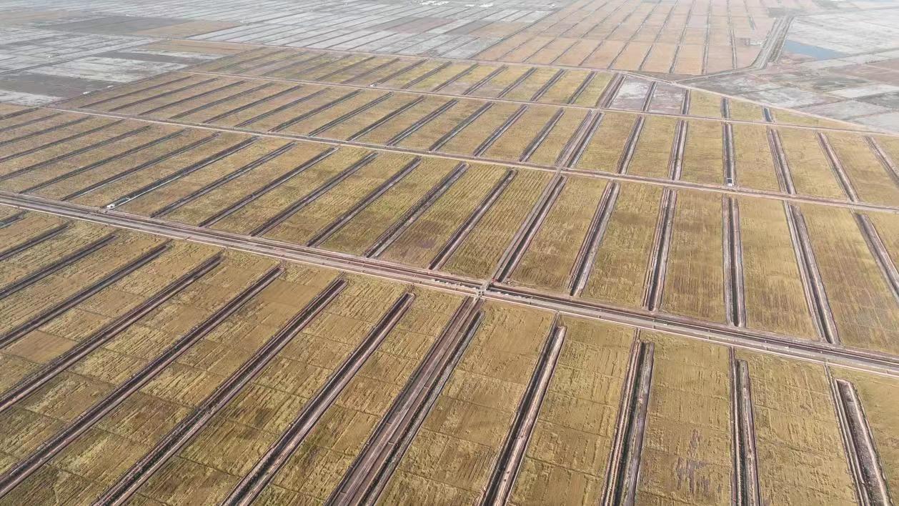 六团双城镇万亩盐碱水稻地航拍。杜新民 摄