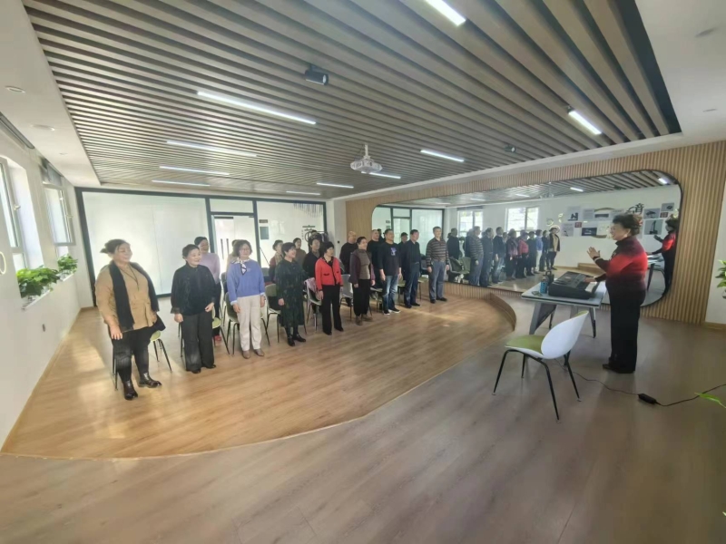 11月22日,在萨依布依街道花城里党群服务中心的音乐课堂,居民张凤英正带领枫叶小合唱队练声。张凤英告诉记者,过去小区里没有适合的场地,队员们出去练习要乘坐40分钟的公交车,现在活动室就在家门口,5分钟就能走到,场地大,队员也从过去的十几人增加到30多人。