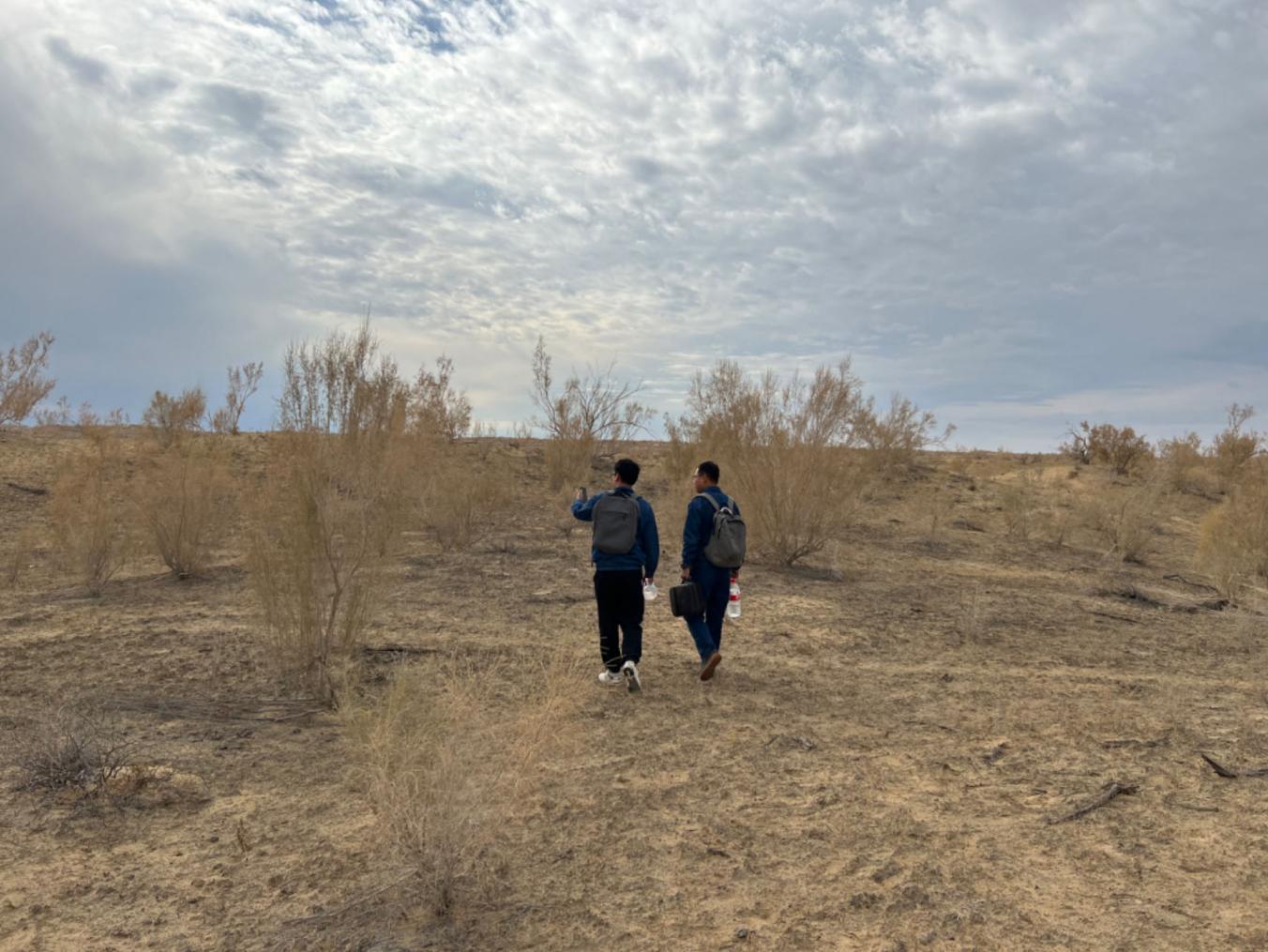 图为国能新疆公司北沙窝光伏发电项目建设者前期踏勘时的场景。王小燕 摄