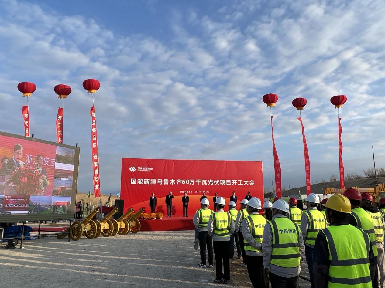 图为国能新疆乌鲁木齐60万千瓦光伏项目开工仪式现场。王小燕 摄