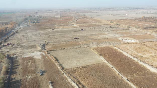 初冬时节,正值高标准农田建设施工“黄金期”,近日,记者在阿拉甫乡3万亩高标准农田建设现场看到,工人们正在抓紧铺设输电线路、填埋渠沟……大型机械往来穿梭,一派繁忙景象。