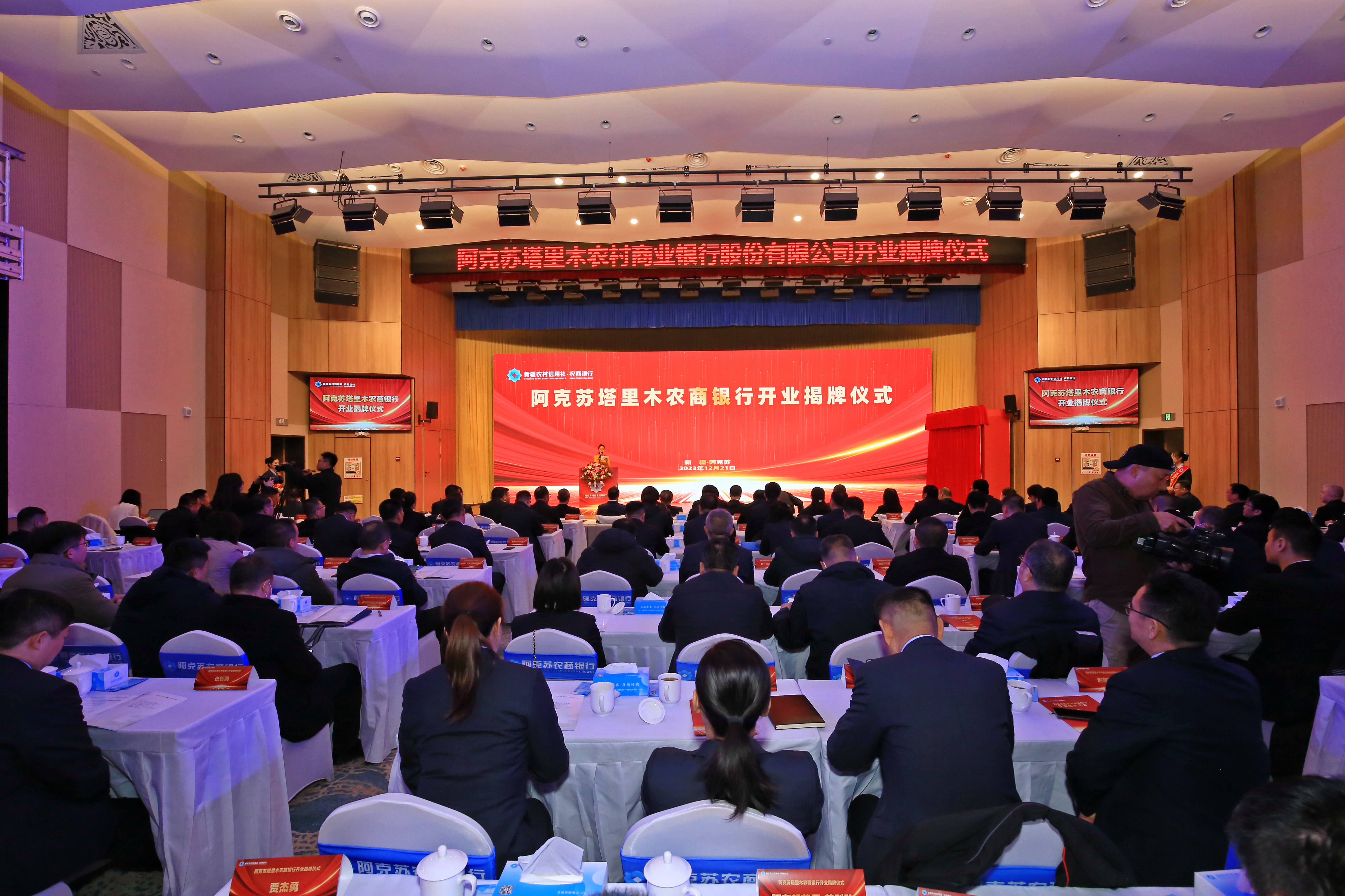 自治区人民政府副秘书长廖伟健与新疆农村信用社联合社党委书记郑育峰共同为阿克苏塔里木农商银行揭牌。国家金融监督管理总局阿克苏监管分局、中国人民银行阿克苏地区分行负责同志在开业仪式上分别宣读了《开业批复》和《办理开业相关事项的复函》。