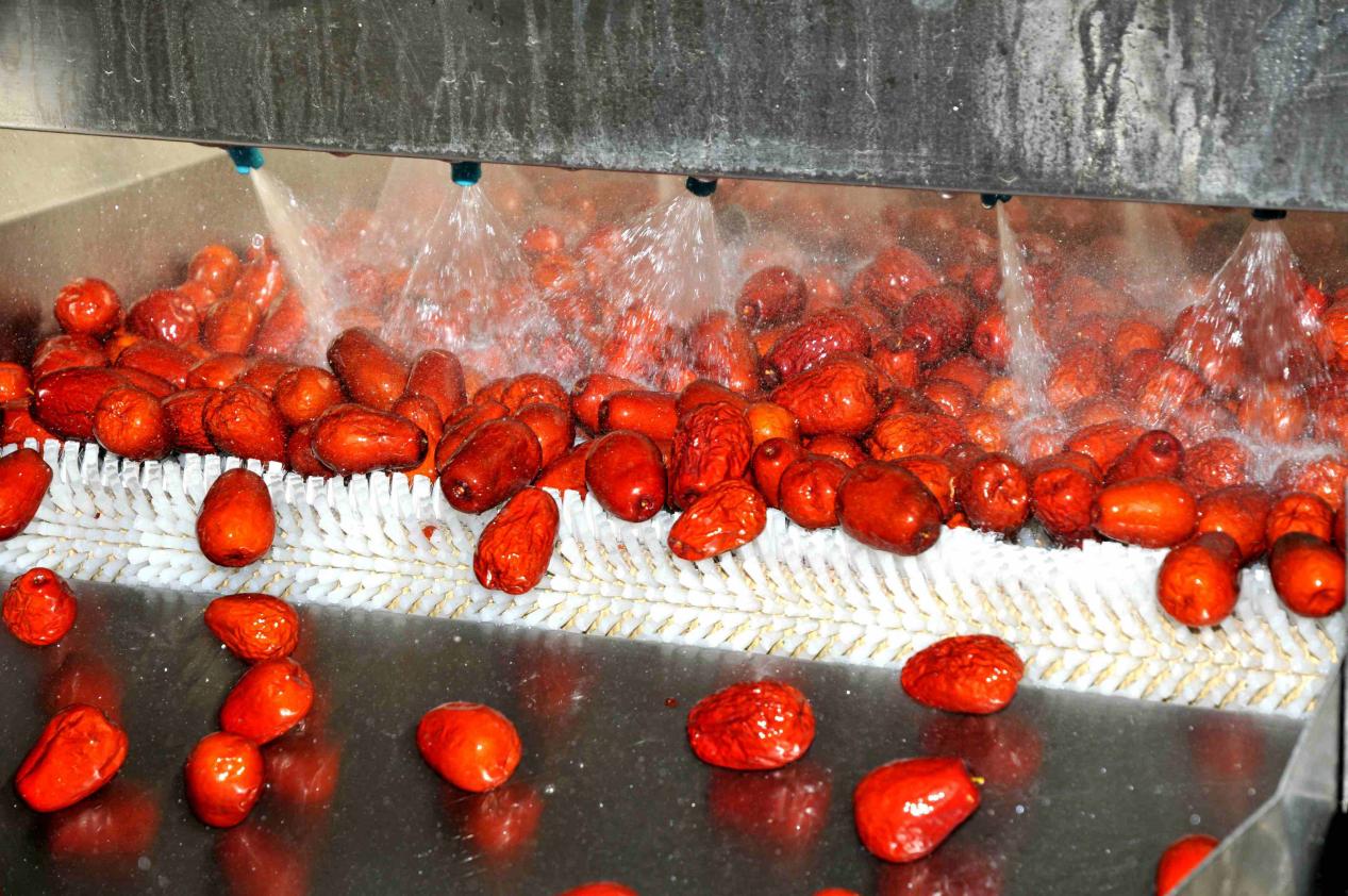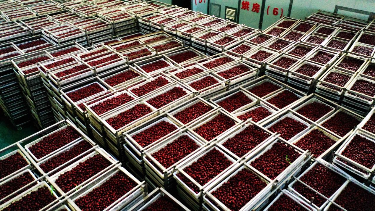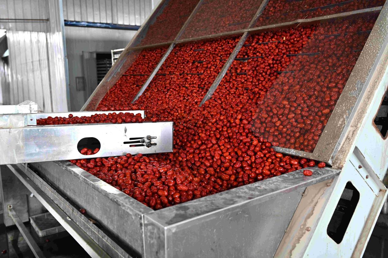 红枣一体化生产线及无尘车间等待烘干的红枣。资料图