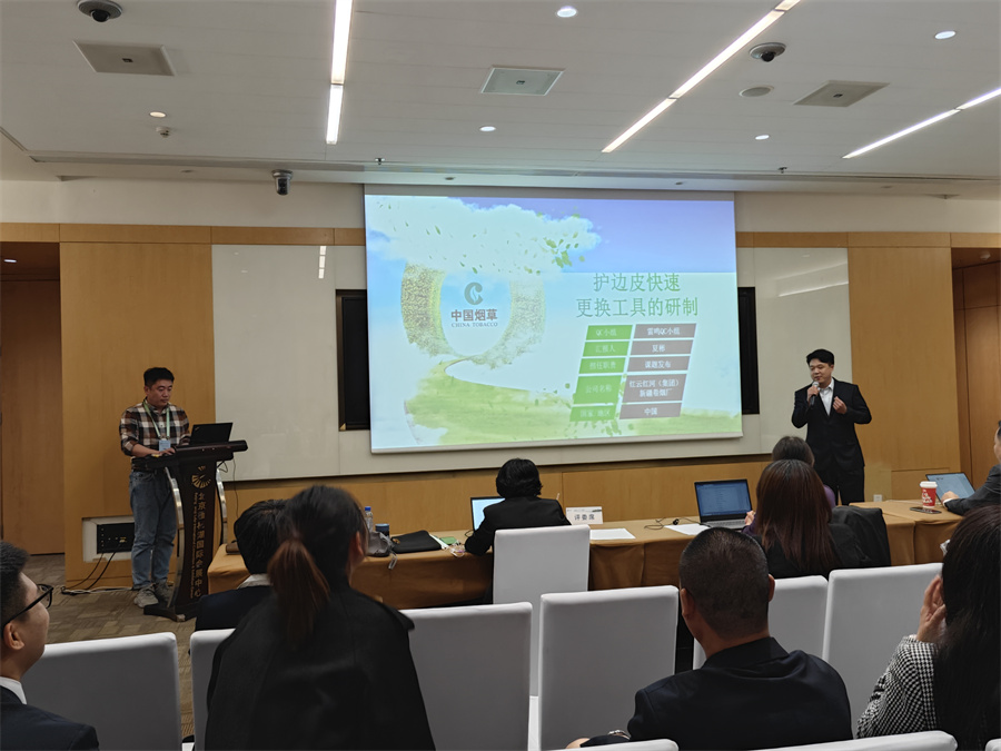 “咱们没写过这类的英文报告材料啊?护边皮的英文单词是什么啊?燕尾槽限位装置咋翻译啊?”面对第一次参加国际比赛的压力,国际报告标准的不熟悉,英文报告材料的撰写等种种困难和压力,课题组的成员们并未退缩。他们将压力转化为动力,以更加专注的态度投入到课题的准备工作中。仔细研究评审标准,不断优化报告材料,全力以赴做好中英文成果报告撰写、PPT制作、现场发布及评委答疑模拟等各环节的准备工作。在云南中烟、集团各级领导和工厂相关部门的高度重视和大力支持下,课题组提交课题材料顺利通过初审。