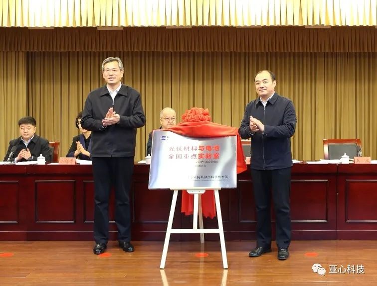 图为:何忠友(左)、王成为新特能源国家重点实验室揭牌。全媒体记者陈星宇摄