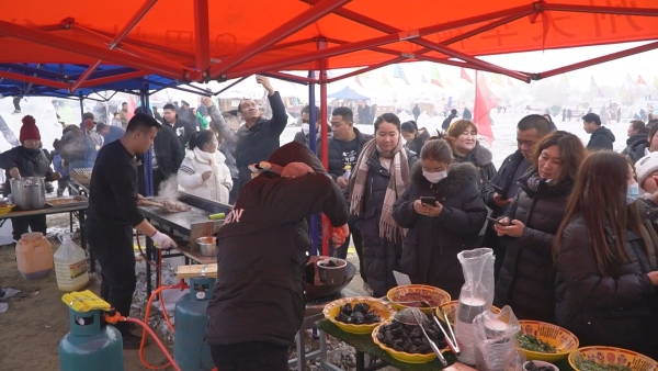 小吃摊位前也是人气火爆,大家在欣赏节目的同时,品尝着特色小吃,别有一番风味。