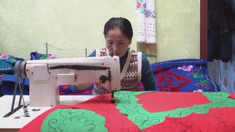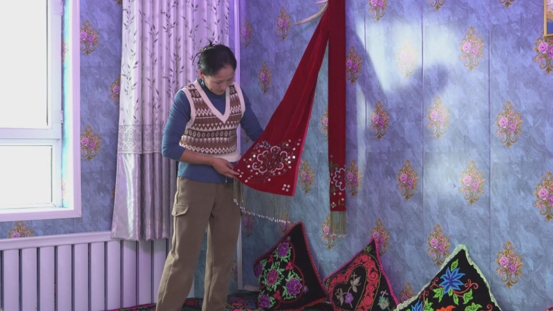 勤劳的巴提汉·赛提汉每天忙完家务后,就会抽空做一些刺绣,从设计、裁剪、缝合到绣花,每一道工序她都做得非常认真,这也让她在忙碌中多了一份收入,收获了幸福生活。