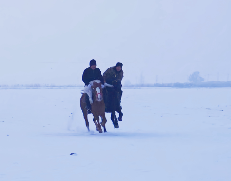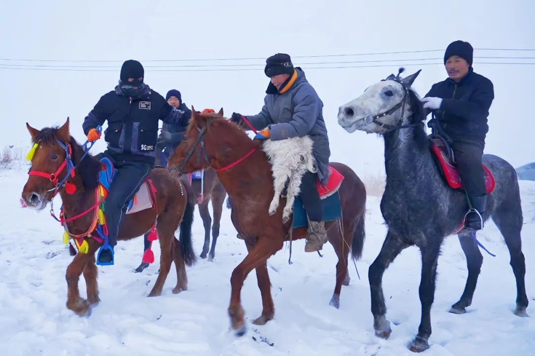 在喀拉阔勒社区的赛马场上,骑手们精神抖擞,在起跑线上一字排开,随着一声令下,大家跃马扬鞭,精湛的骑术和赛马雄健的风姿,让围观群众似乎忘记了刺骨的寒风。