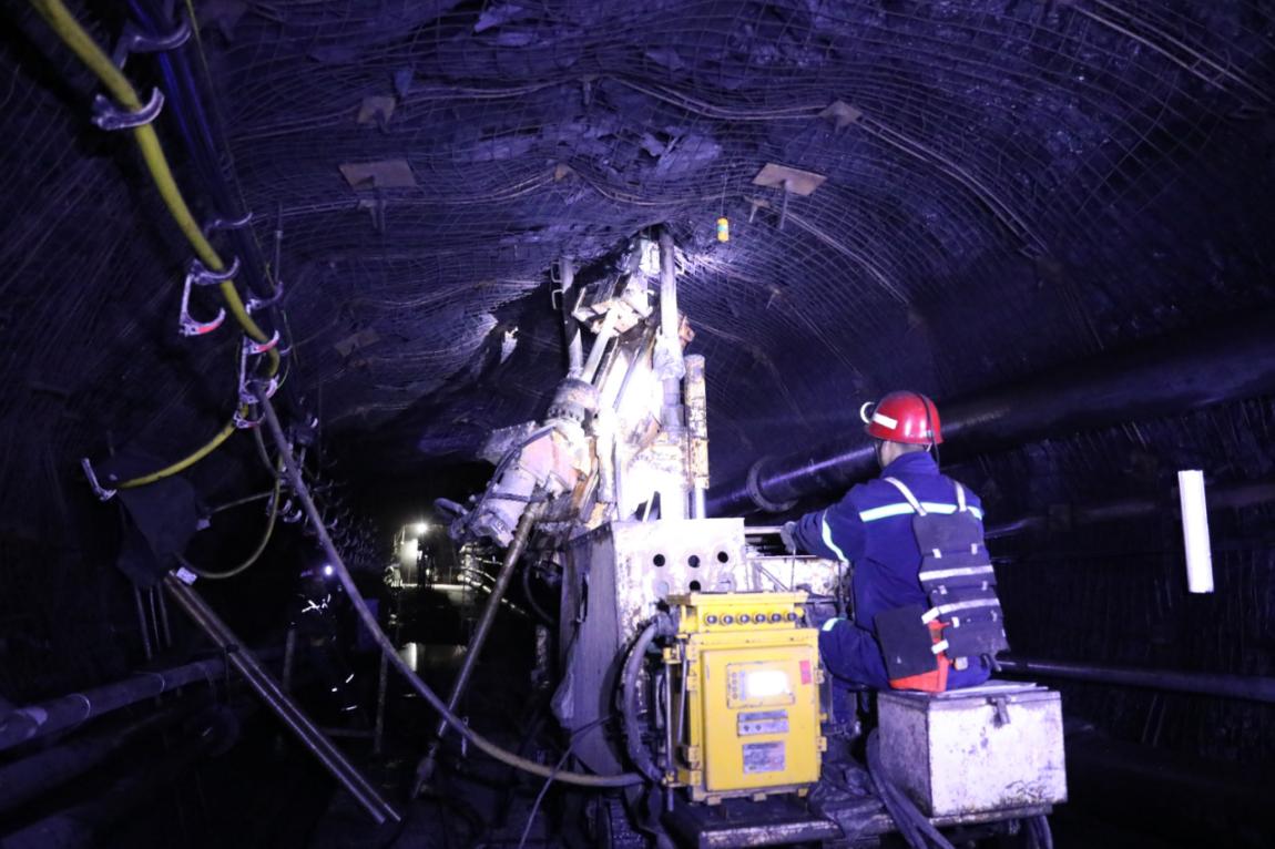 图为宽沟煤矿职工在工作面施工超前切顶孔。刘志杰 摄