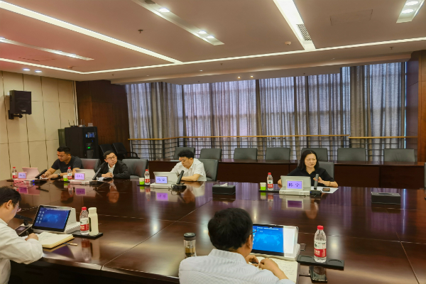 陈宁(右一)在中建股份技术中心开展外墙保温材料技术交流现场