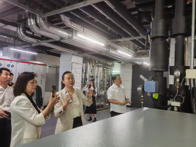 陈宁(左一)在中国建科院考察零能耗建筑示范项目
